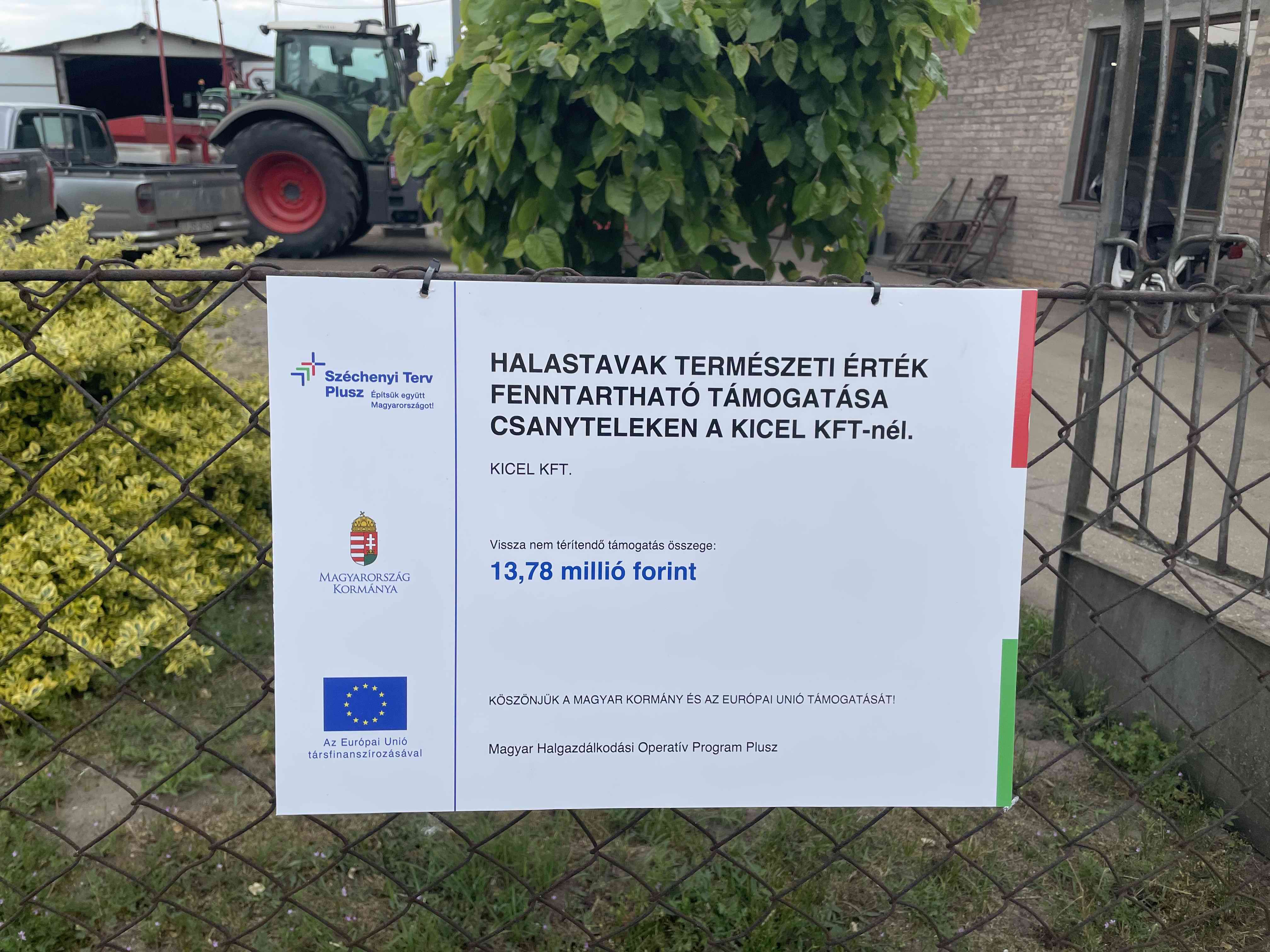 HALASTAVAK TERMÉSZETI ÉRTÉK FENNTARTHATÓ TÁMOGATÁSA CSANYTELEKEN A KICEL KFT-nél.